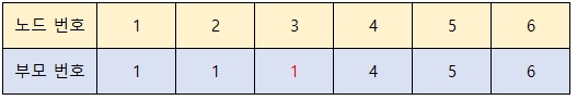 우리는 부모 번호를 통해서 루트 노드(대표 원소)를 찾아갈 수 있다.