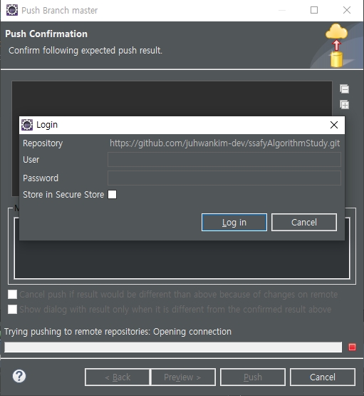 그리고 Store in Secure Store 옵션을 체크하면 비밀번호를 다시 되묻지 않으니 체크하자.