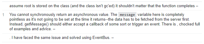 데이터를 불러오는 것은 비동기식으로 작동하기 때문에 반환 값은 항상 null이 된다.