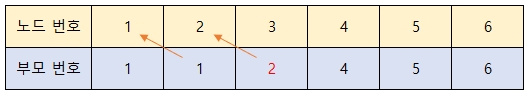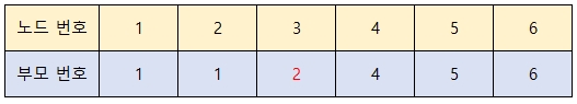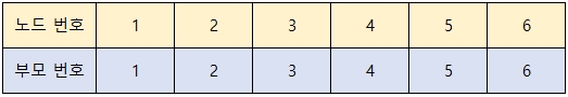 6번까지 동일하기 때문에 노드 번호와 부모 번호가 전부 같다.