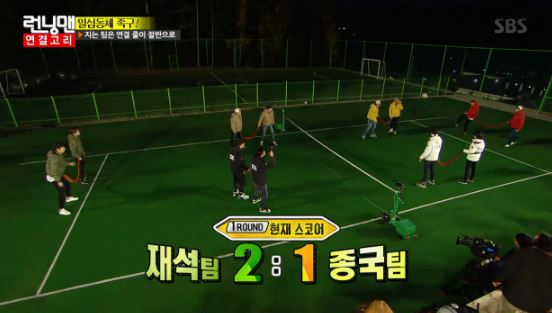 "지효야 너 무슨 팀이야? 재석팀이구나."
