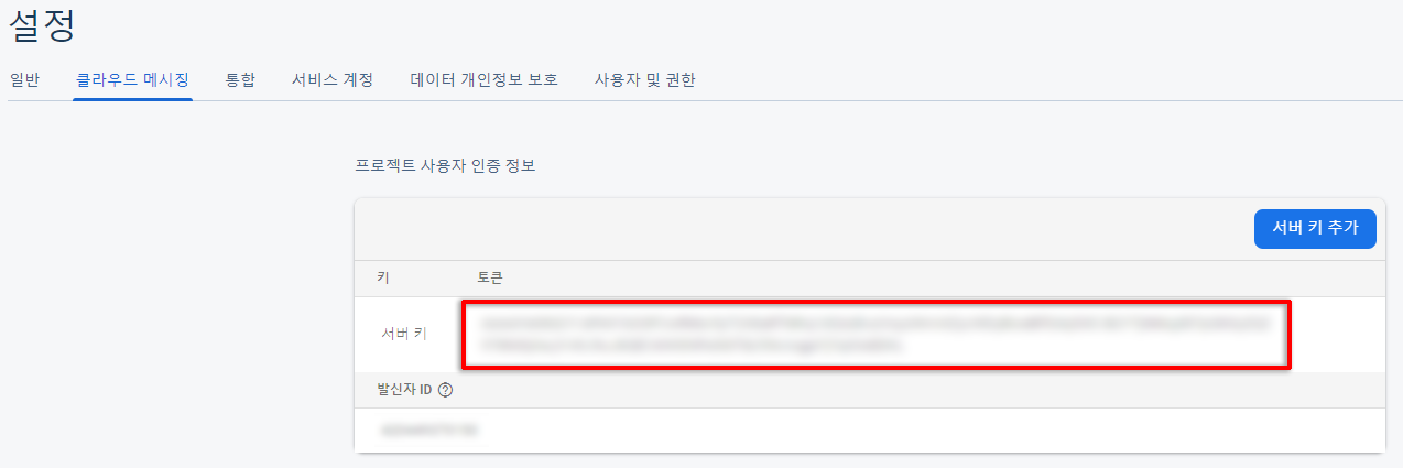 # 파이어베이스 콘솔에서 얻어 온 서버 키를 넣어 줌