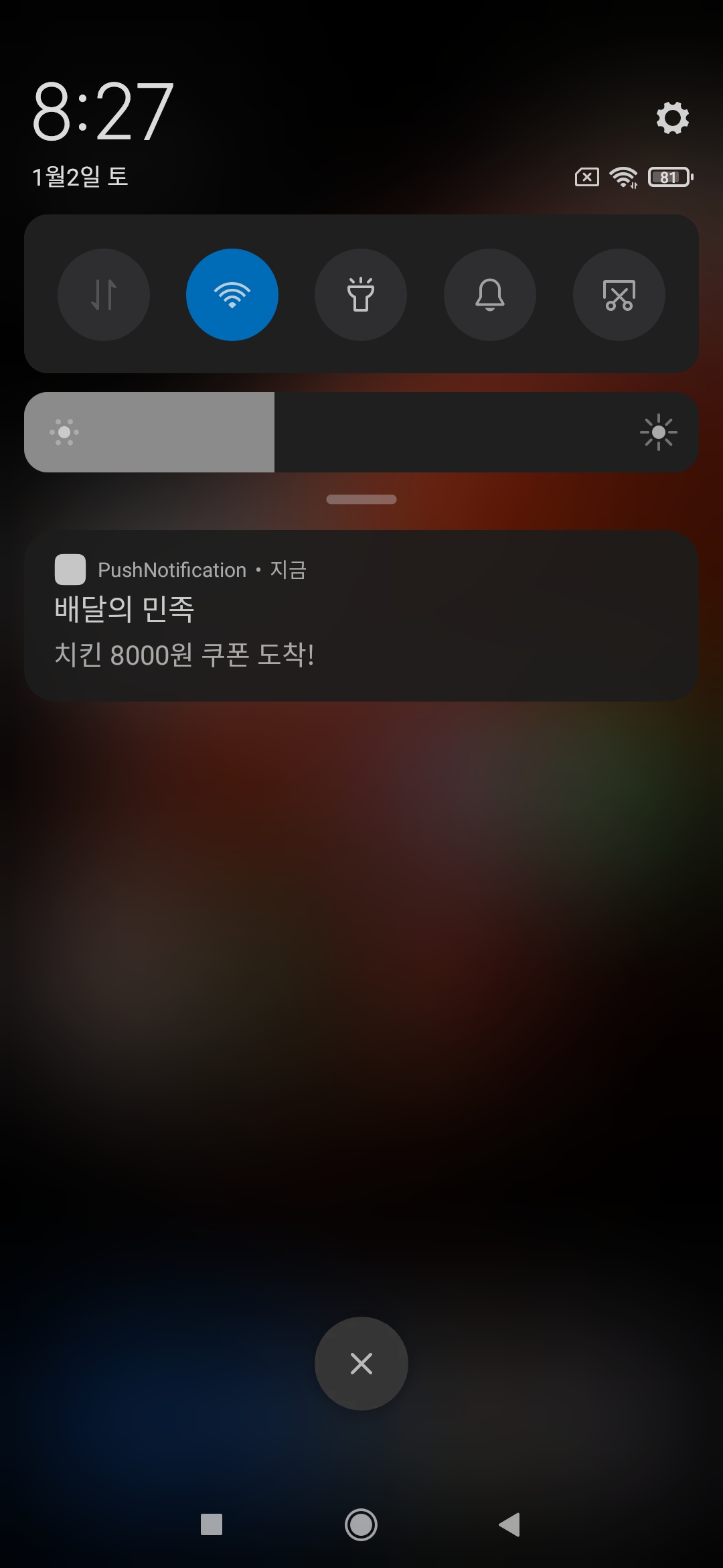 sendMessage("배달의 민족", "치킨 8000원 쿠폰 도착!")