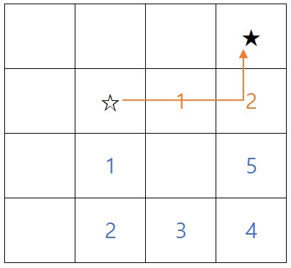 기준점으로부터 1씩 이동하면서 방문했던 곳을 체크하며 카운트를 하면 된다.