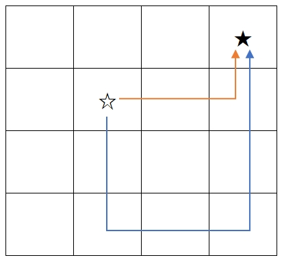 주황색 루트로 탐색하면 더 빠르게 도착하고, 주어진 시간 내에 더 먼 거리까지 도달할 수 있을 텐데