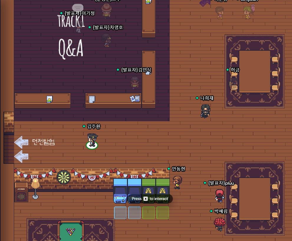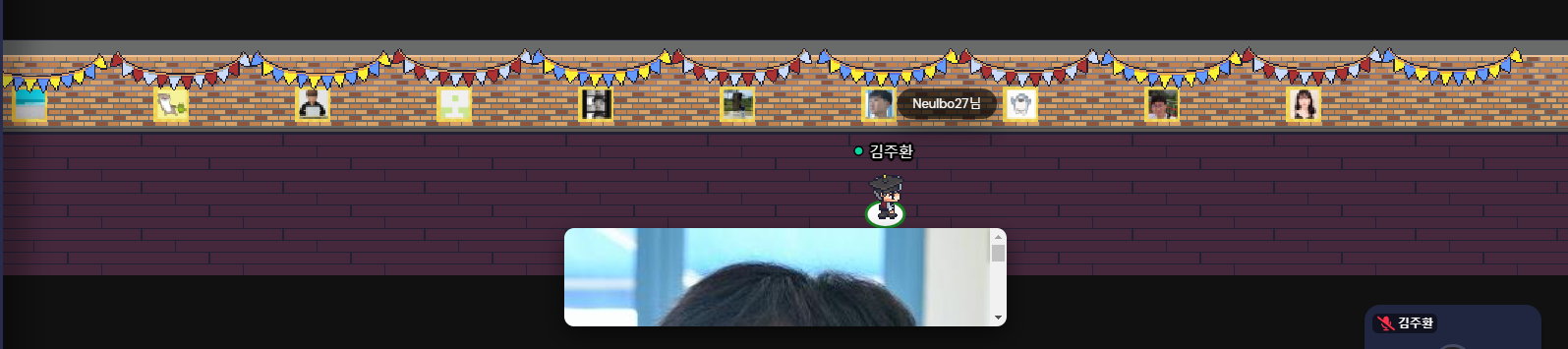 알고 보니 캐릭터와 캐릭터가 일정 범위 안에 가까워지면 화상회의하듯이 서로의 얼굴을 보고 음성을 들을 수 있었다.