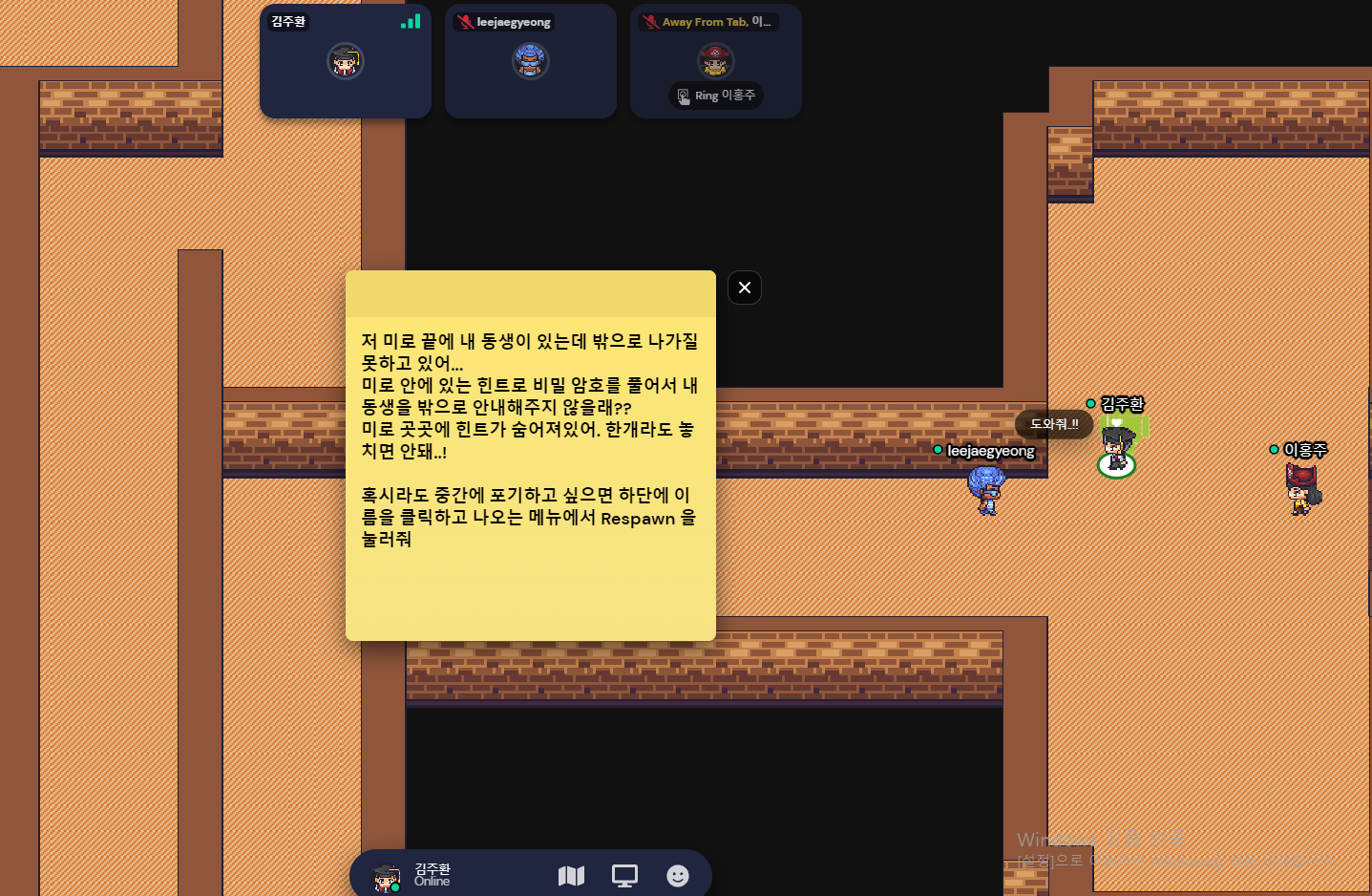 미로를 탈출하라고 해서 "오... 이거 깨면 뭔가가 있는 건가!?" 해서 열심히 돌아다녔다.