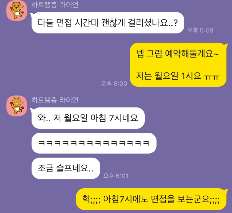 면접 날짜, 시간은 랜덤하게 정해지는 데 스터디 팀원 중에 아침 7시 배정받은 분이 계셨습니다 ㄷㄷㄷ 😱