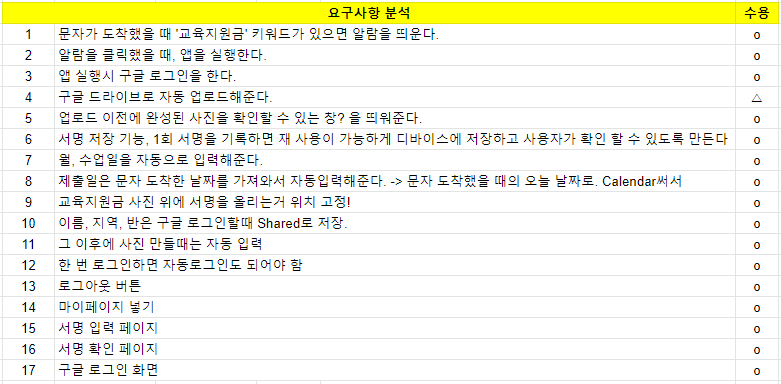 회의하면서 작성하다보니 아니다 싶으면 빼 버려가지고 수용할 요구사항만 남게 됐다.