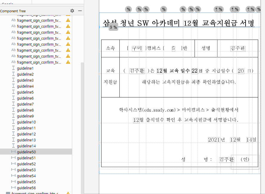 어느 정도 오차가 허용되고 간단한 레이아웃이면 이 ConstraintLayout을 사용하는 것만으로도 해결이 되긴 하지만
