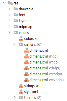 레이아웃에서 그 margin값을 사용하면 사용자의 스마트폰 해상도에 맞는 margin값을 알아서 사용한다.
