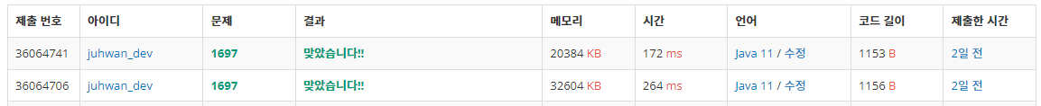 이 2가지만 신경 쓰면 쉽게 풀 수 있는 문제이다.