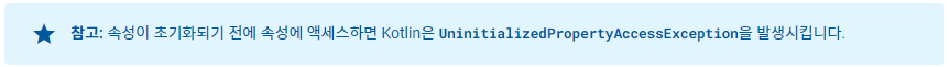 다만 lateinit은 var로 선언해야 하며 언제든 값을 수정할 수 있지만