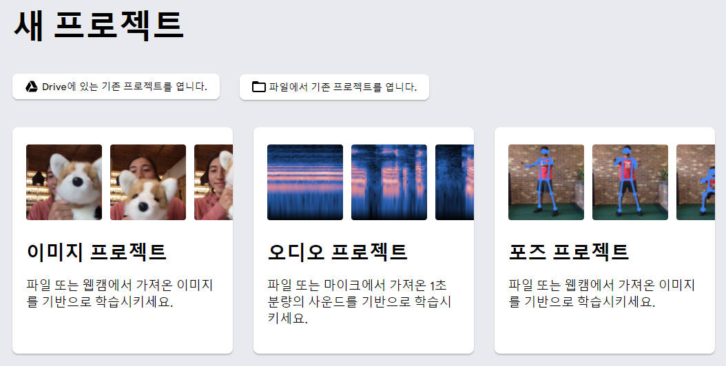 티쳐블 머신에서 몇 가지 서비스를 소개하고 있다.