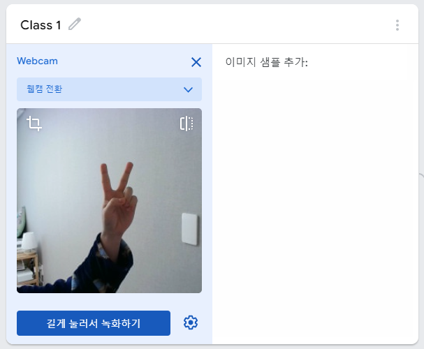 다른 한 손으로는 인식하고 싶은 동작을 카메라로 비춰준다.