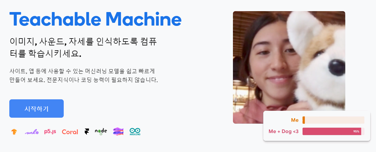 Teachable Machine은 나처럼 머신러닝의 '머'자도 모르는 사람도 쉽게 인공지능을 구현할 수 있는 서비스이다.