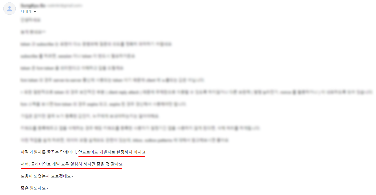 분명 메일 말머리에 "저는 안드로이드 개발자를 희망하고 있습니다"라고 소개를 했는데