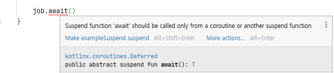 job.await() // suspend 덕분에 여기는 오류가 뜨지 않는다.