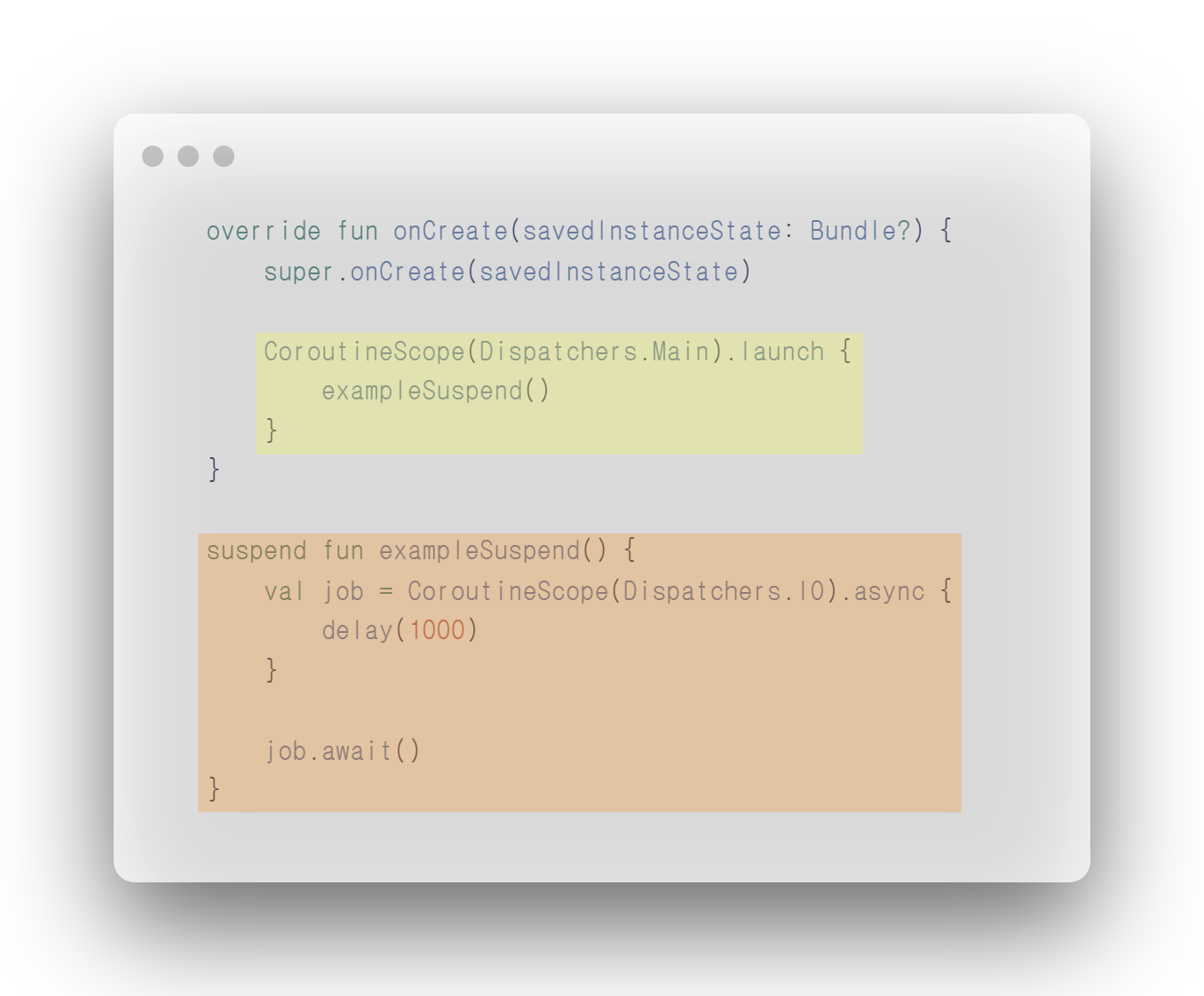 이를 해결하려고 exampleSuspend를 또 다른 suspend 함수 안에 넣어봤자