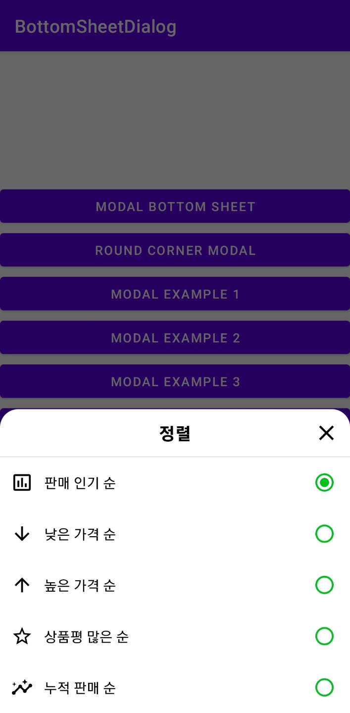 Modal과 다른 점은 별도의 BottomSheetDialogFragment를 생성하는 게 아니라