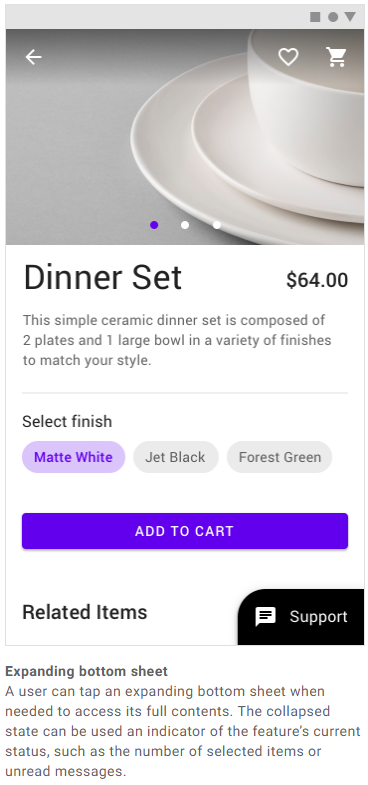 사용자가 기존 화면에 있는 콘텐츠와 상호작용 하면서 Persistent Bottom Sheet도 같이 볼 수 있다. |