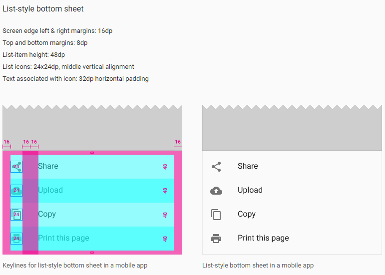 Google Material 공식문서에는 Bottom Sheet의 UI/UX에 대한 많은 정보를 얻을 수 있다.