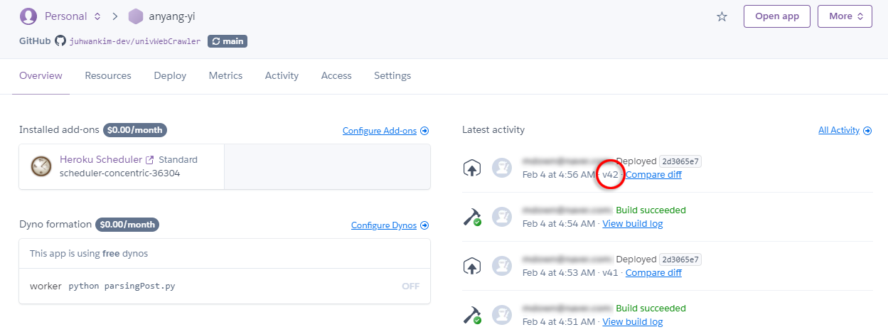 푸시 알림을 보내주던 서버는 노트북에서 heroku라는 플랫폼으로 옮겼다.