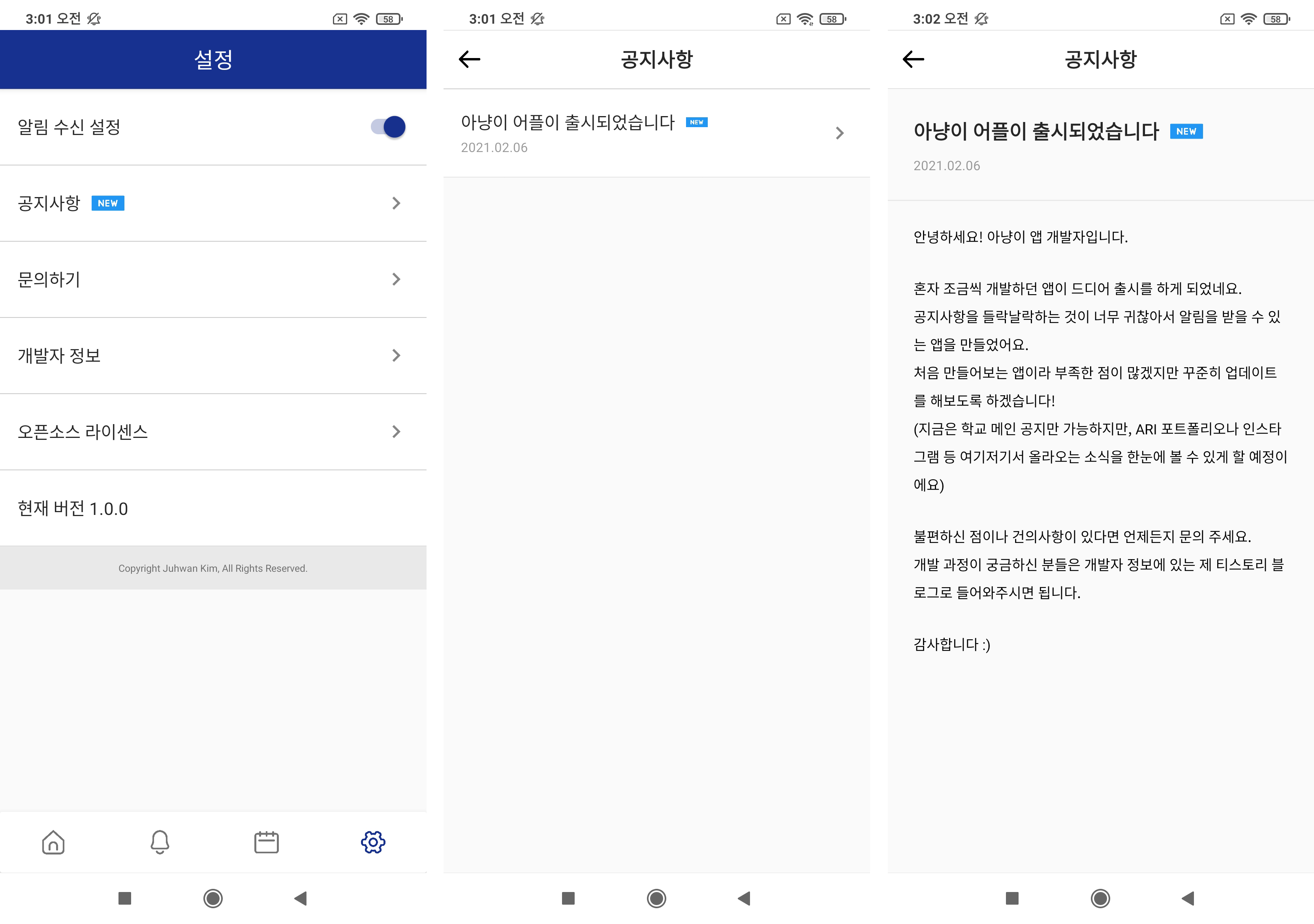 "앱에 학교랑 무관하게 혼자 만든 앱이라고 표시도 해두었고"