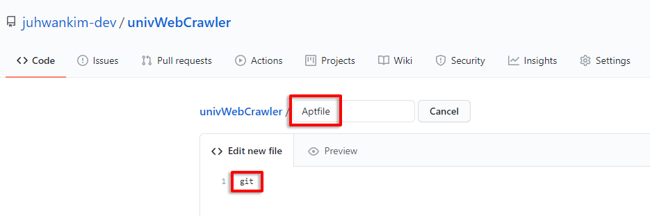 내용에 git이라고 적고 파일 이름은 Aptfile이라고 적어주면 된다.