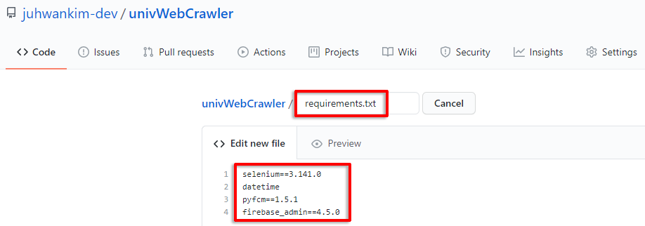 이 파일에선 내가 사용할 라이브러리(파이썬에선 모듈이라고 하나..? 암튼)와 버전을 명시해주어야 한다.