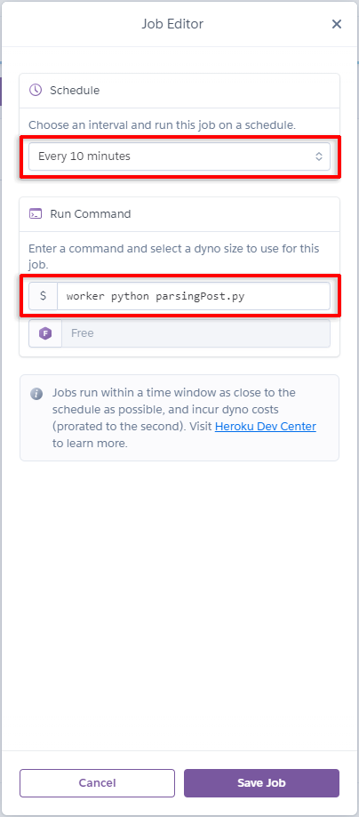 그리고 프로그램을 실행하기 위해 명령어를 적어주고 Save Job을 해주면 된다.