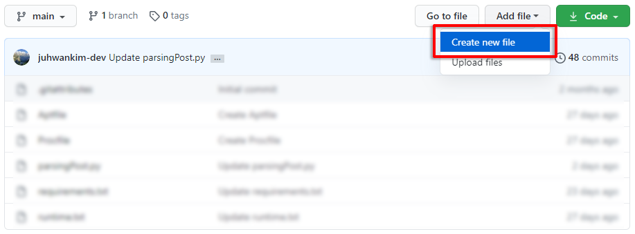 위 명령어로 파일을 생성 후 깃허브에 올려주면 된다.