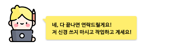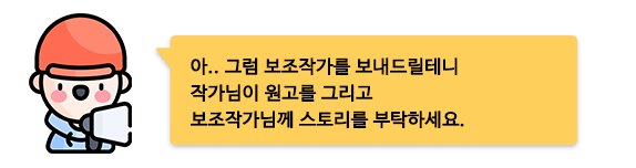 보조작가가 작업이 다 끝나면 전화를 해주기로 했다.