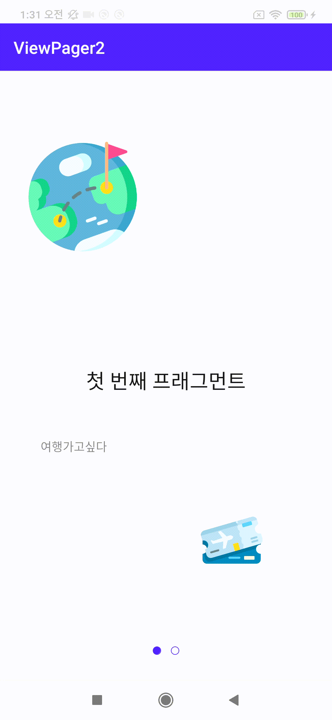 ViewPager 폴더를 다운받으셔서 앱 실행해보시면 기본편, 활용편 총 10가지의 예제를 확인하실 수 있습니다 :)