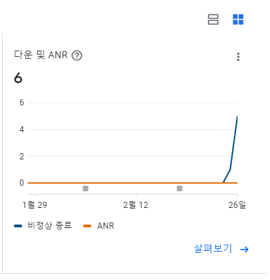 그 와중에 비정상적으로 앱이 종료된 횟수가 6번이나 된다.