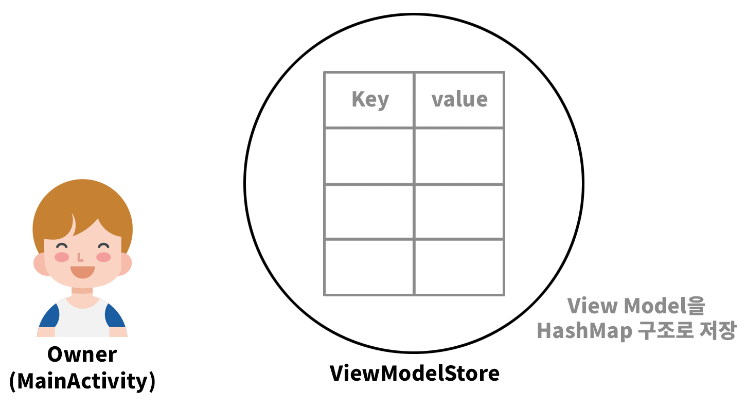 ViewModelStore은 ViewModel 객체가 HashMap 구조로 저장되는 곳이다.