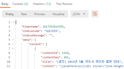 예를 들어, retrofit 라이브러리를 사용하면 위 사이트의 공지사항들을 불러올 수 있다.
