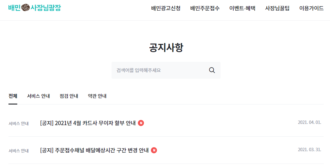 배달의 민족 사이트는 허용하고 있어 예제로 사용했다.