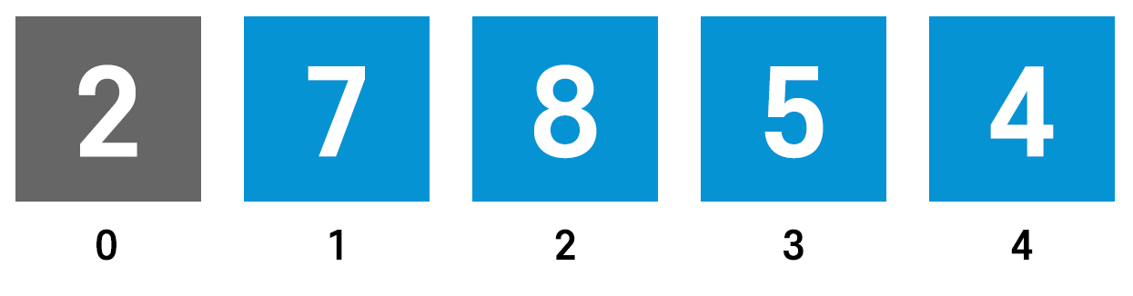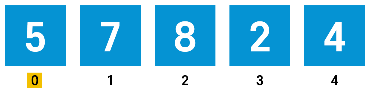 5, 7, 8, 2, 4 중 가장 작은 값을 선택해서 0번째 인덱스의 값과 자리를 바꾼다.
