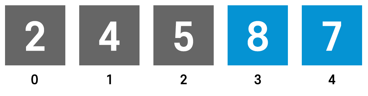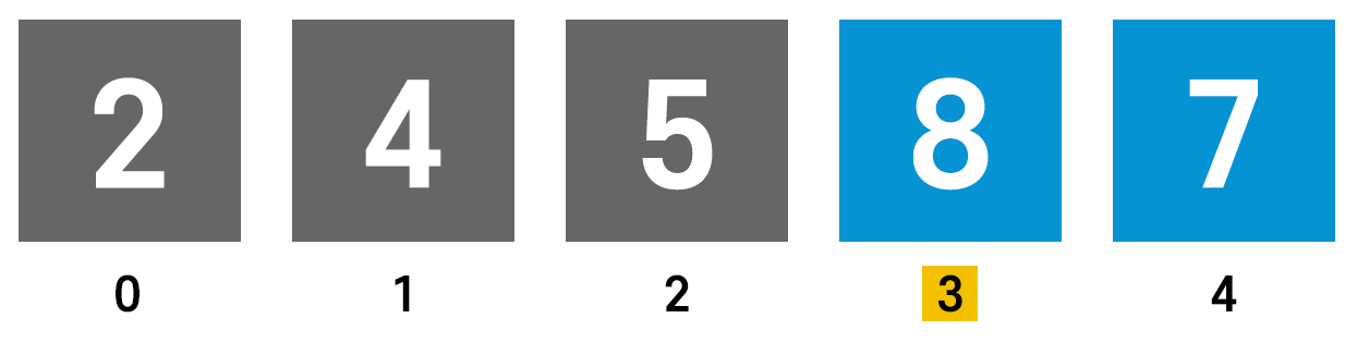 이번엔 8, 7 중에 가장 작은 값을 찾아 3번째 인덱스의 값과 자리를 바꾼다.