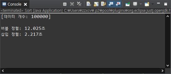System.out.println("버블 정렬: " + (endTime - startTime) / 1000.0 + "초");
