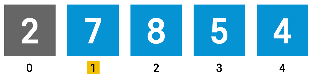 이번엔 7, 8, 5, 4 중에 가장 작은 값을 찾아 1번째 인덱스의 값과 자리를 바꾼다.