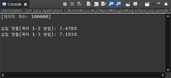 - 거의 정렬되어 있는 수열이 주어졌을 때 삽입 정렬보다도 유리한 정렬이 있을까? 앞으로 정렬 시리즈를 계속 포스팅하면서 시간 측정 비교를 계속해봐야겠다.