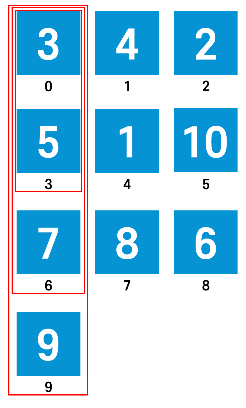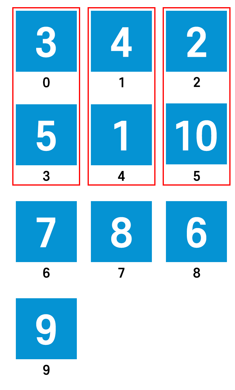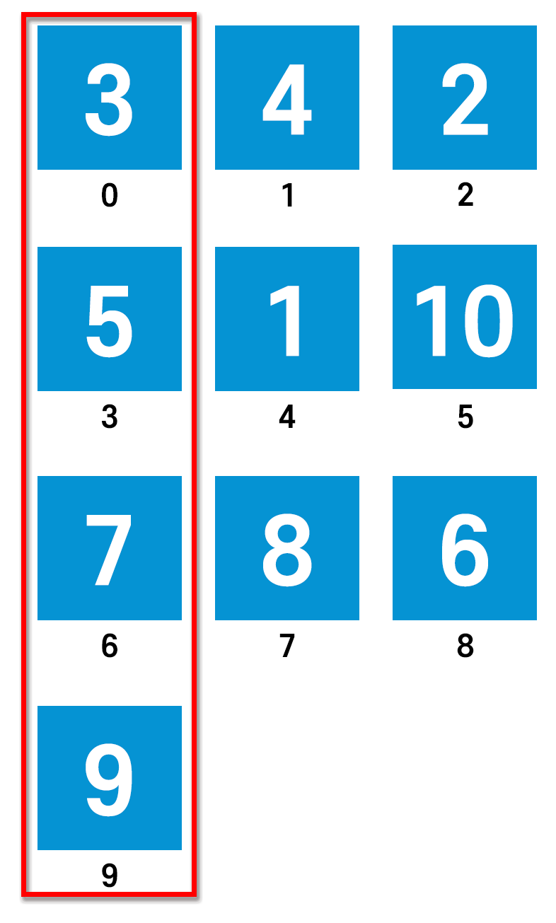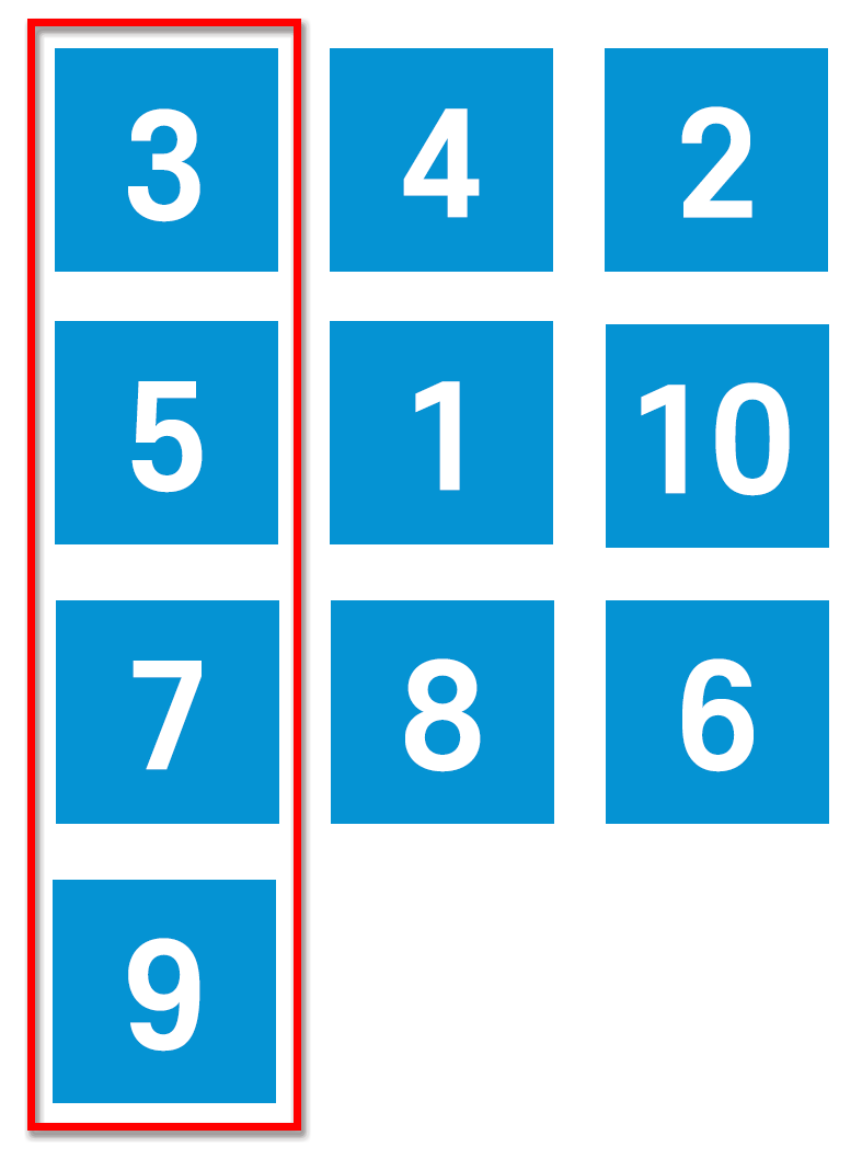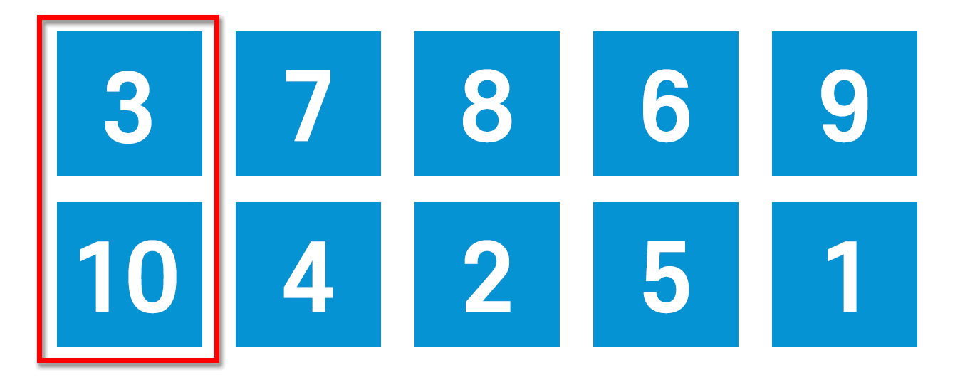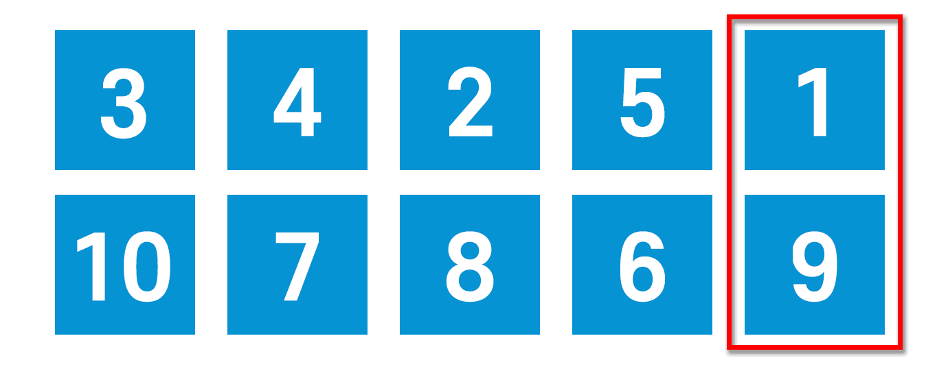이제 해야 할 것은 세로로 숫자를 읽었을 때 오름차순이 되도록 하는 것이다.