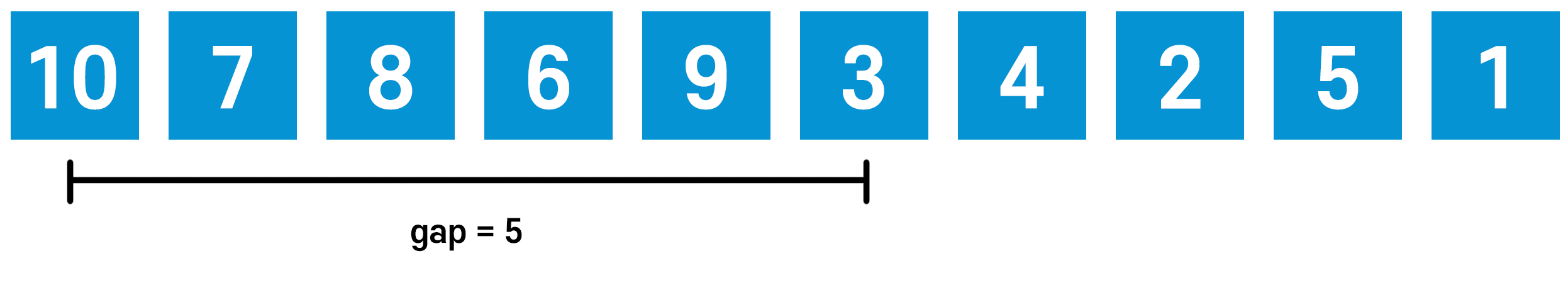 마지막으로 gap은 3 / 2 = 1이 되며 이 상태로 삽입 정렬을 하면 정렬은 끝이 난다.