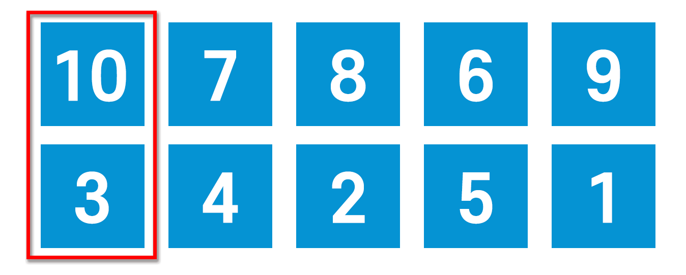10이 3보다 크니까 둘의 자리를 바꾸자. (삽입 정렬 이용)