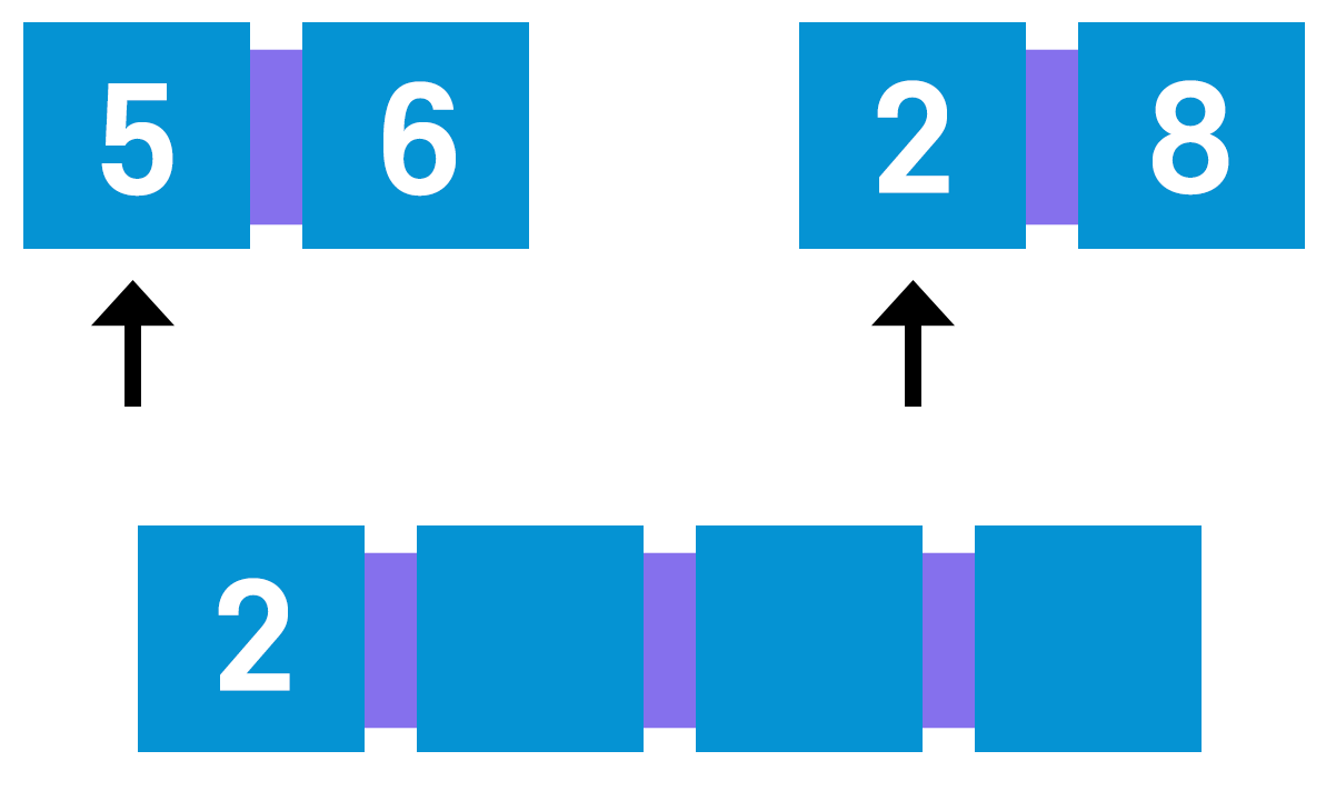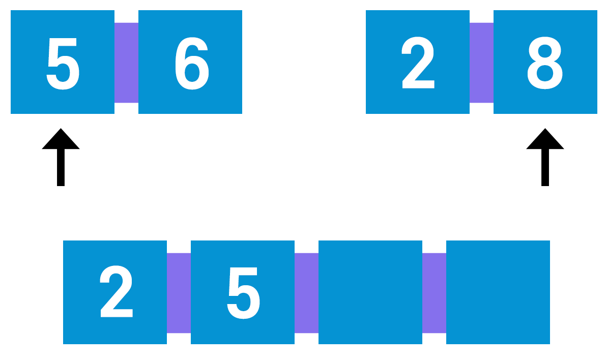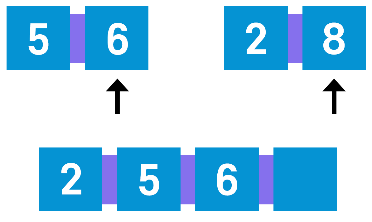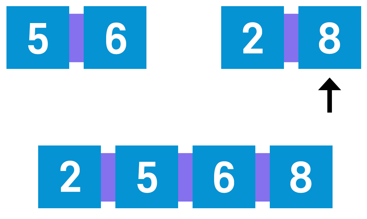 연습 삼아 5, 6 그리고 2, 8을 합병해보자.