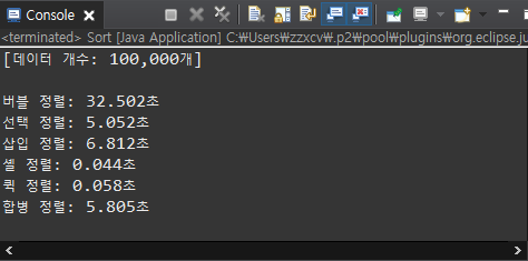 이번에도 역시 실제로 정렬 속도가 얼마나 되는지 궁금해서 테스트를 해보았다.