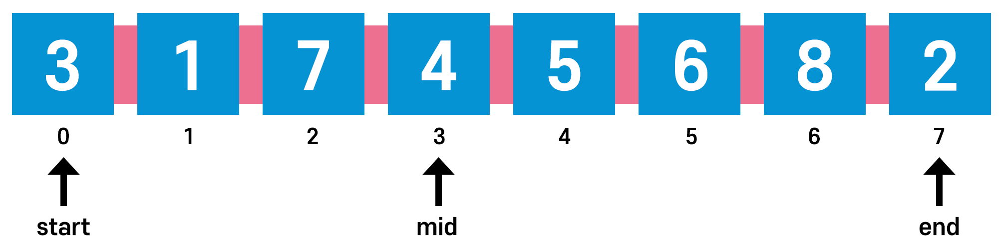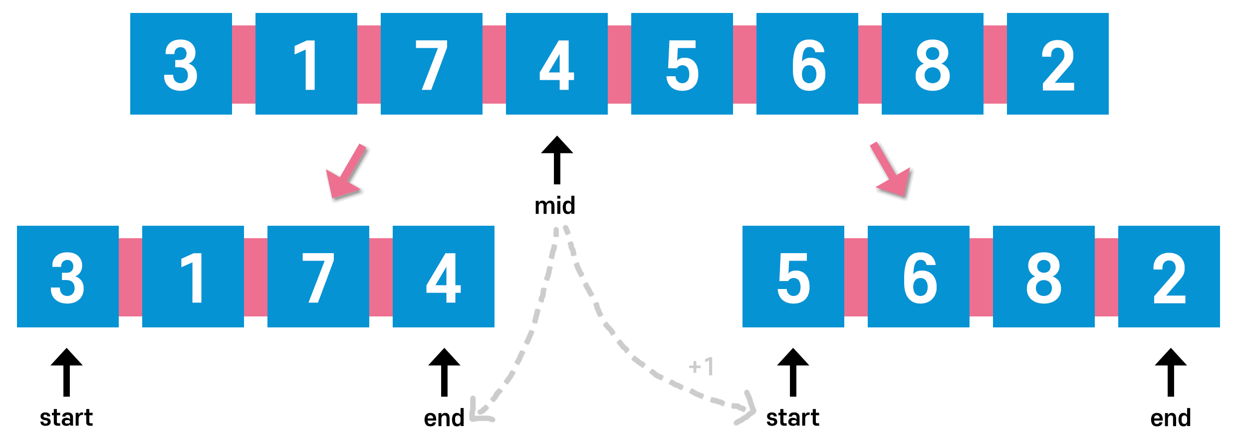 mid 인덱스에 +1 한 값이 오른쪽 파티션에서는 start가 된다는 점을 염두에 두고