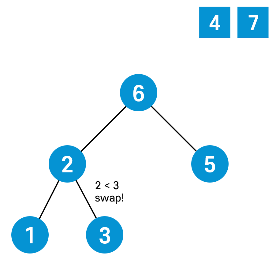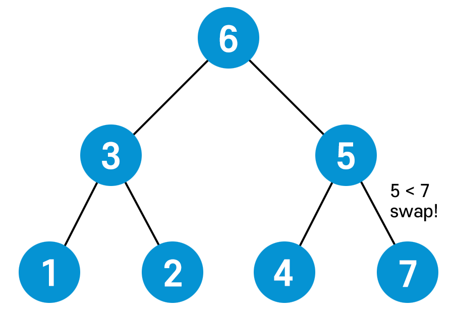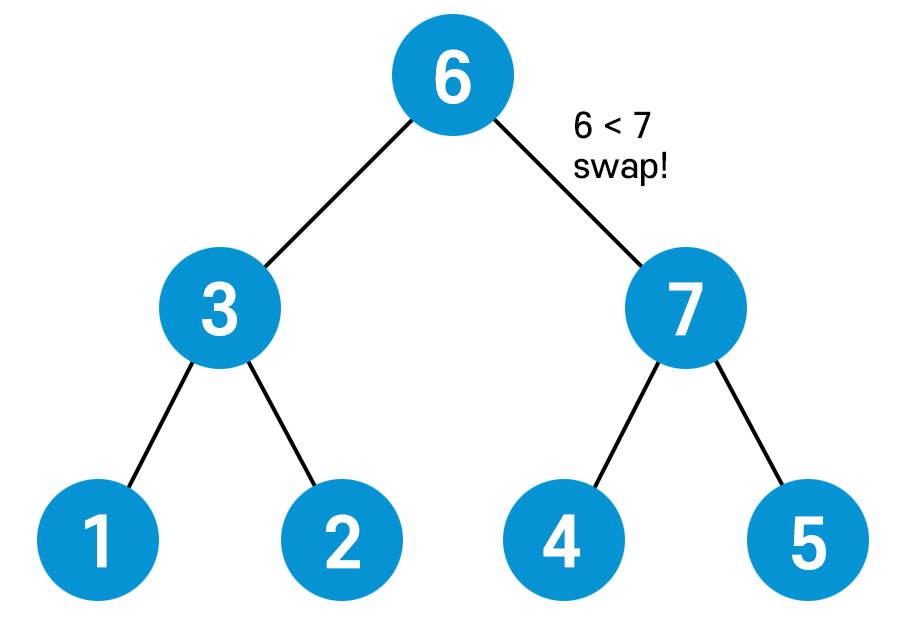 이번엔 부모 노드(6)가 자식 노드(7) 보다 작기 때문에 또다시 swap을 해준다.